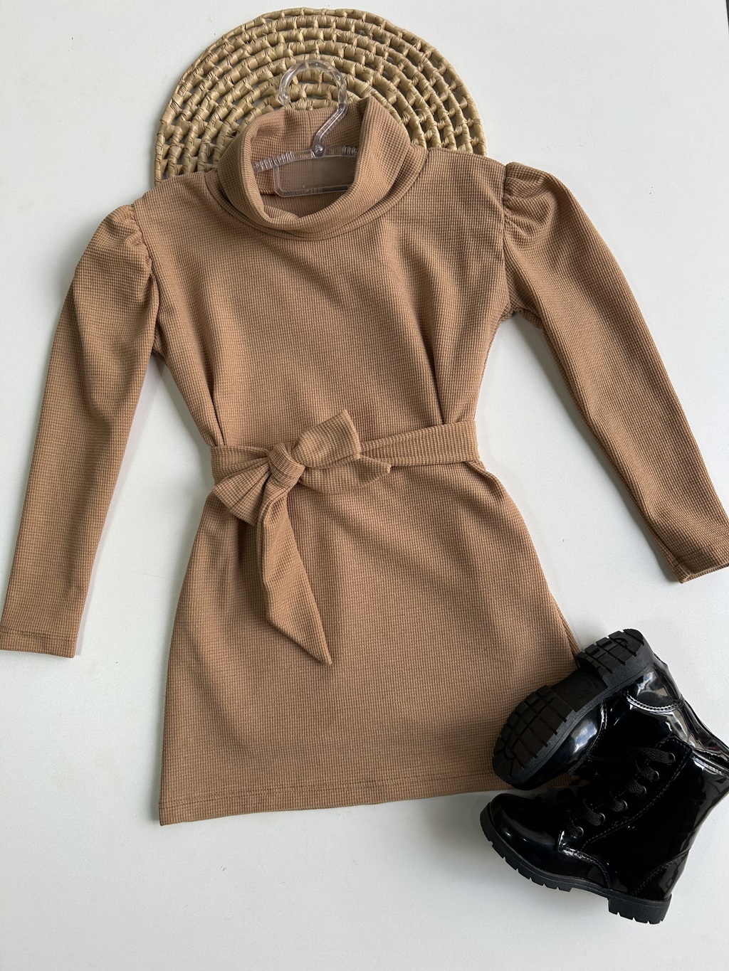 Vestido Infantil de Tricô com Gola Alta – Marrom